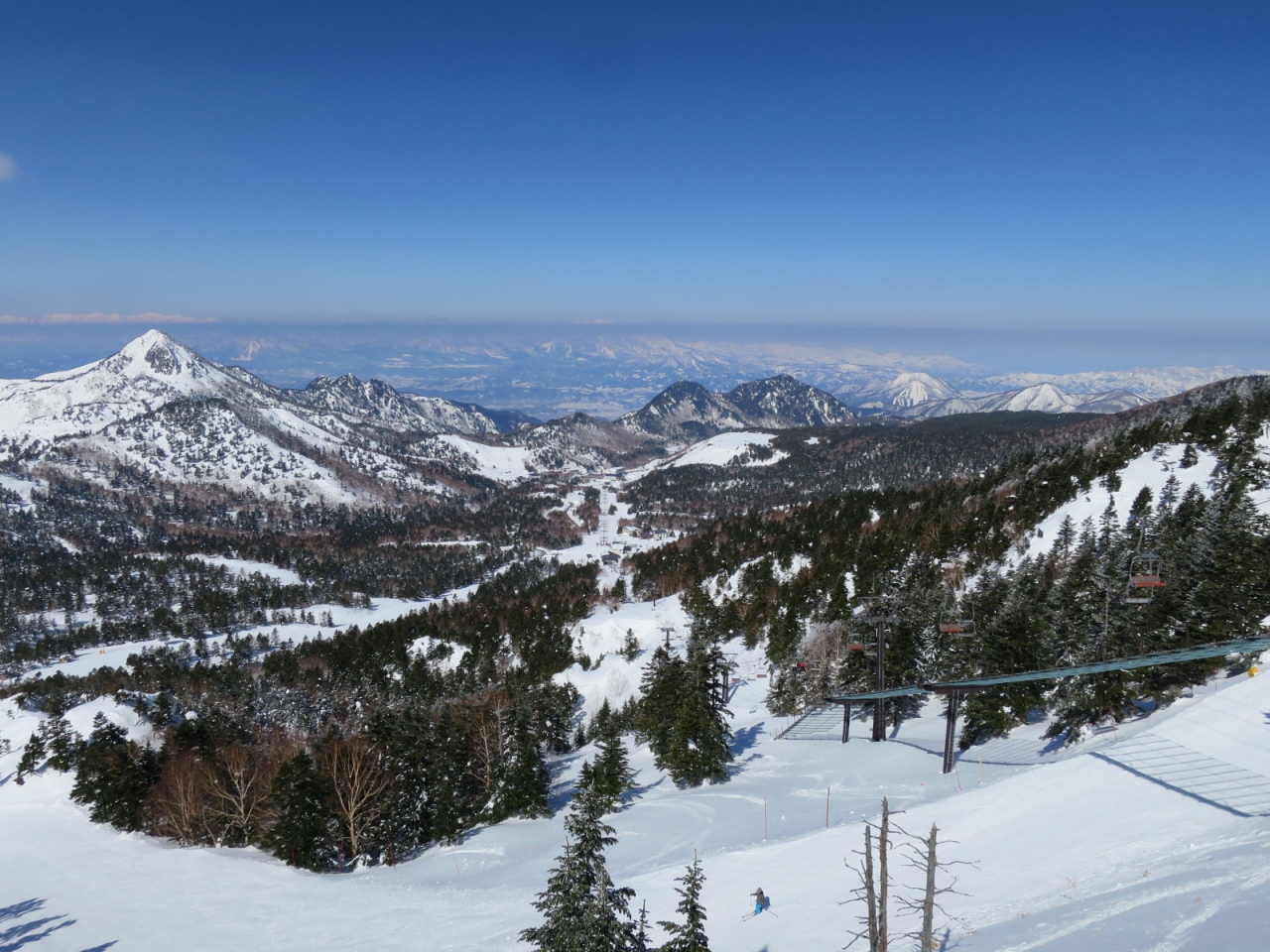ゲレンデトップは横手山の2,307mで、ここには展望所があり、遠く白馬や妙高、新潟の山々や日本海などの絶景が見える。