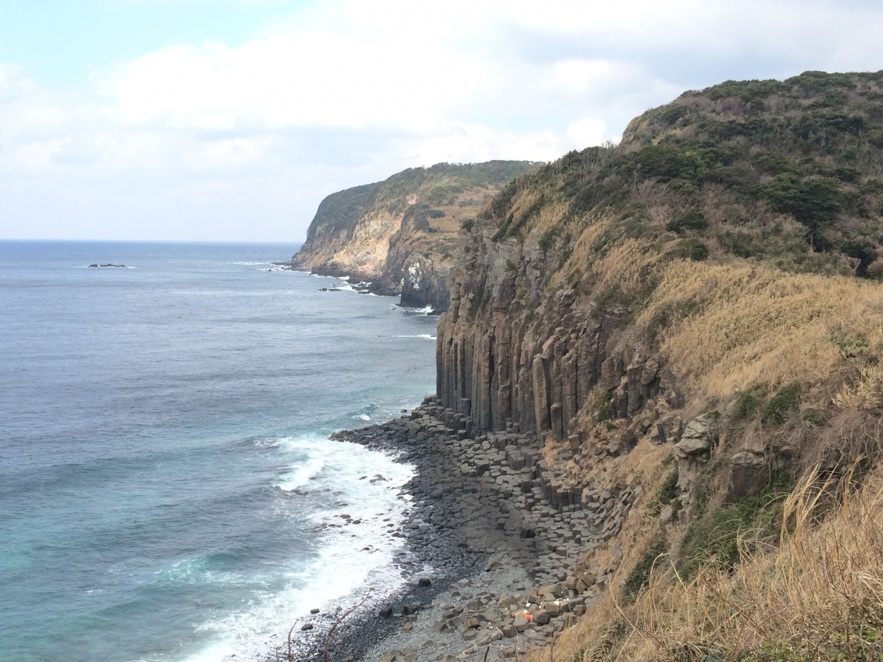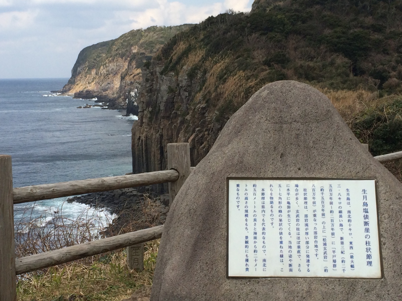 塩俵の意味はよく解りませんが、六角柱の巨岩が整然と垂直に並んでおり自然の力に感動しました。
