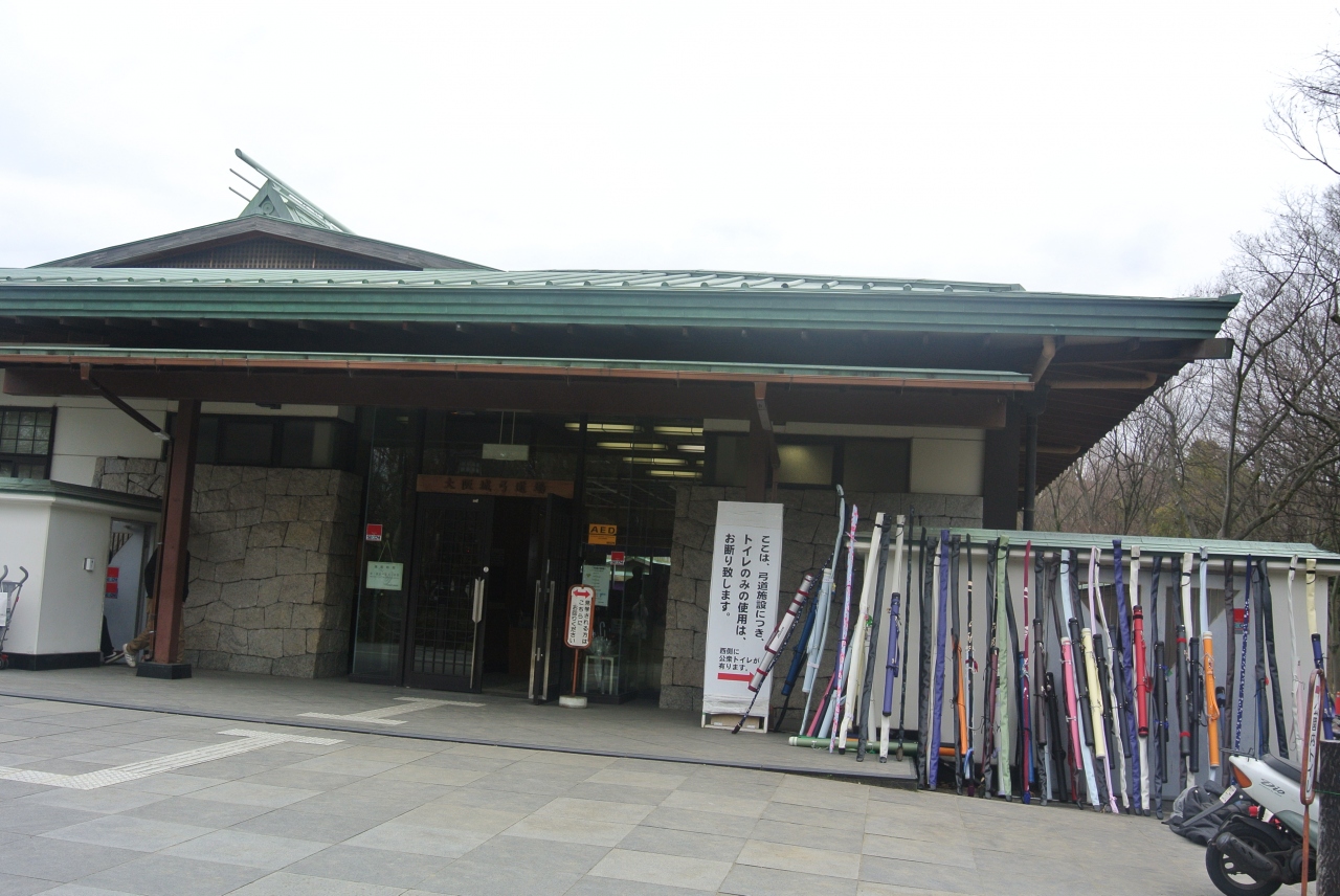 大阪城公園内にあります。ちょうど学生さんの弓道の試合をやっていて見学させてもらいました。的の周りが土になっているというのも初めて知りました。弓道はそれなりの設備があるところでないとできないので、このような施設はやはり必要だと思いました。