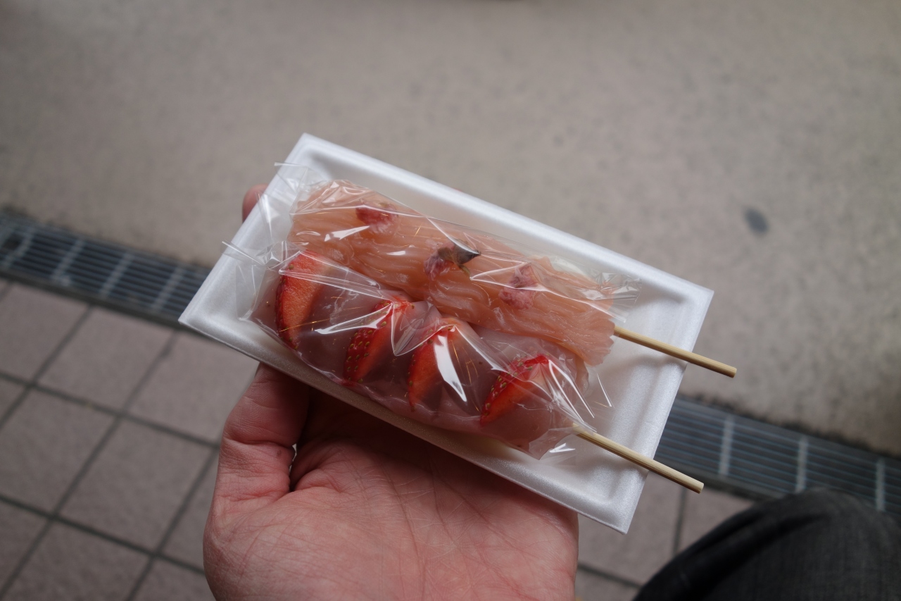 子供達はカットされた苺の乗ったいちご餡の団子を食べていました。