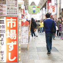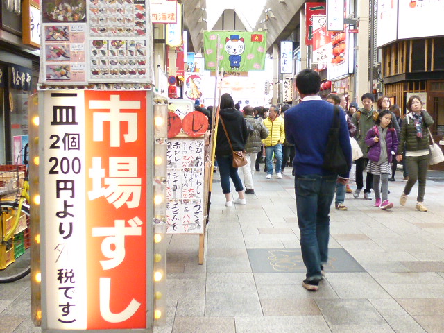 千日前商店街南北に走っている商店街で戎橋商店街と並行して走っています。どちらも多くの人が通行しているのですが、どちらか言うと千日前の方がネオンが派手でうるさくゴチャゴチャしています。しかしこれが大阪らしくて良いのでしょうね。久しぶりにNGKから道頓堀川まで歩いて見ました。「よしもと」の前とアーケードを出た道頓堀川付近では立ってたこ焼きを食べている外国人を多く見ます。大きな旅行ケースを引張っている人もいます。旅行をしていると言うトレンドなのでしょうかね。途中回転ずし、ラーメン屋、串カツ屋など食の大阪らしさを楽しめます。水掛け不動尊で有名な法善寺もあります。ちょっと静かになります。是非大阪らしさを堪能してください。