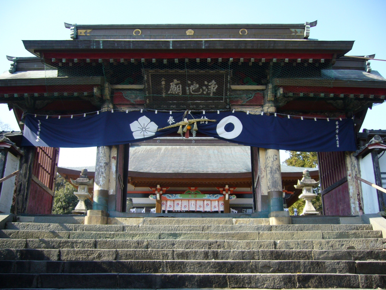 - 境内は緩やかな登り階段。清正公像へは小山を登ります。