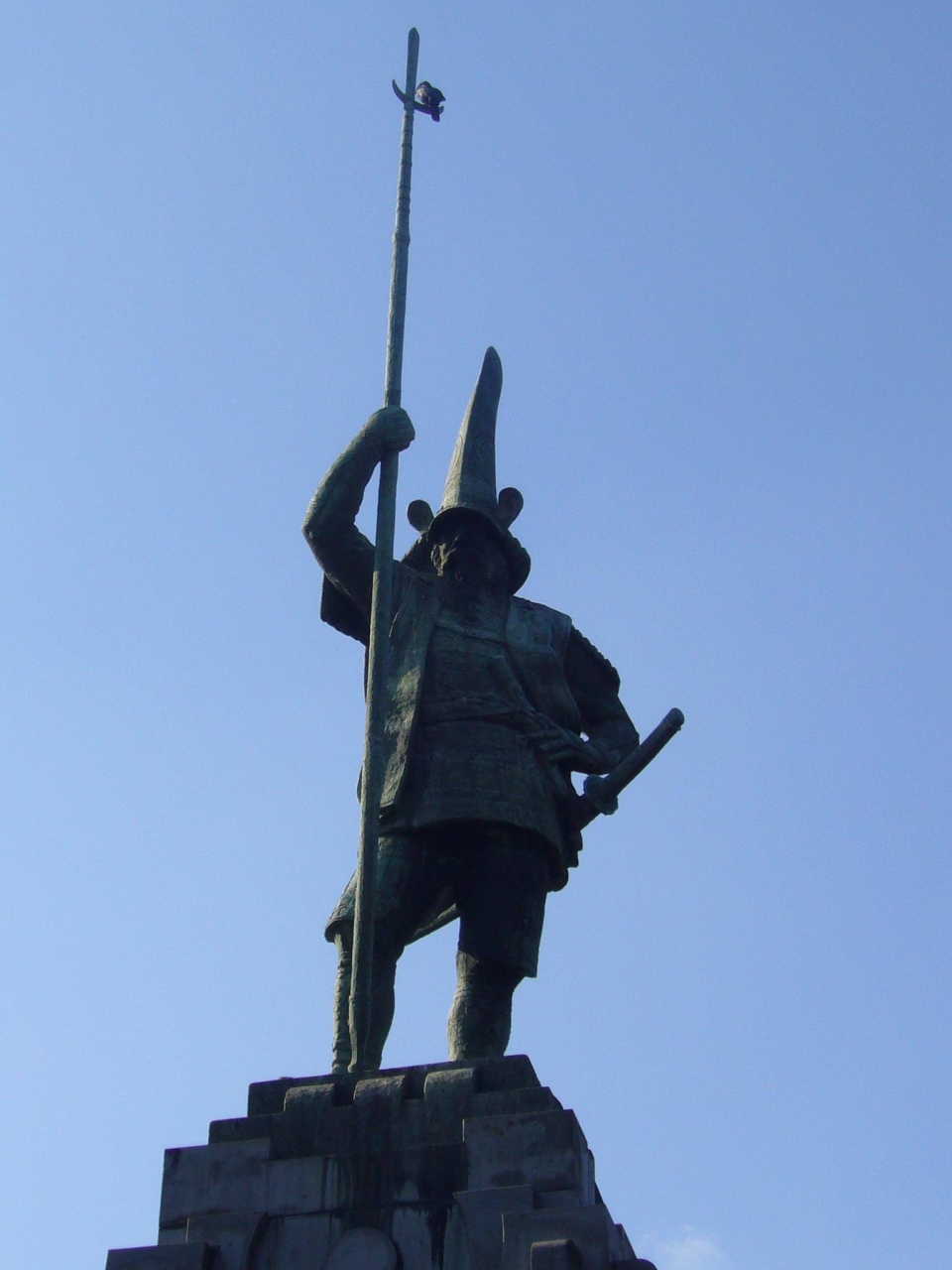 さらに奥の小山に汗をかいて登るとかっこいい加藤清正公の像が建っており、熊本市街が一望できます。高校の部活が走って登ってきて体力づくりをしていました。