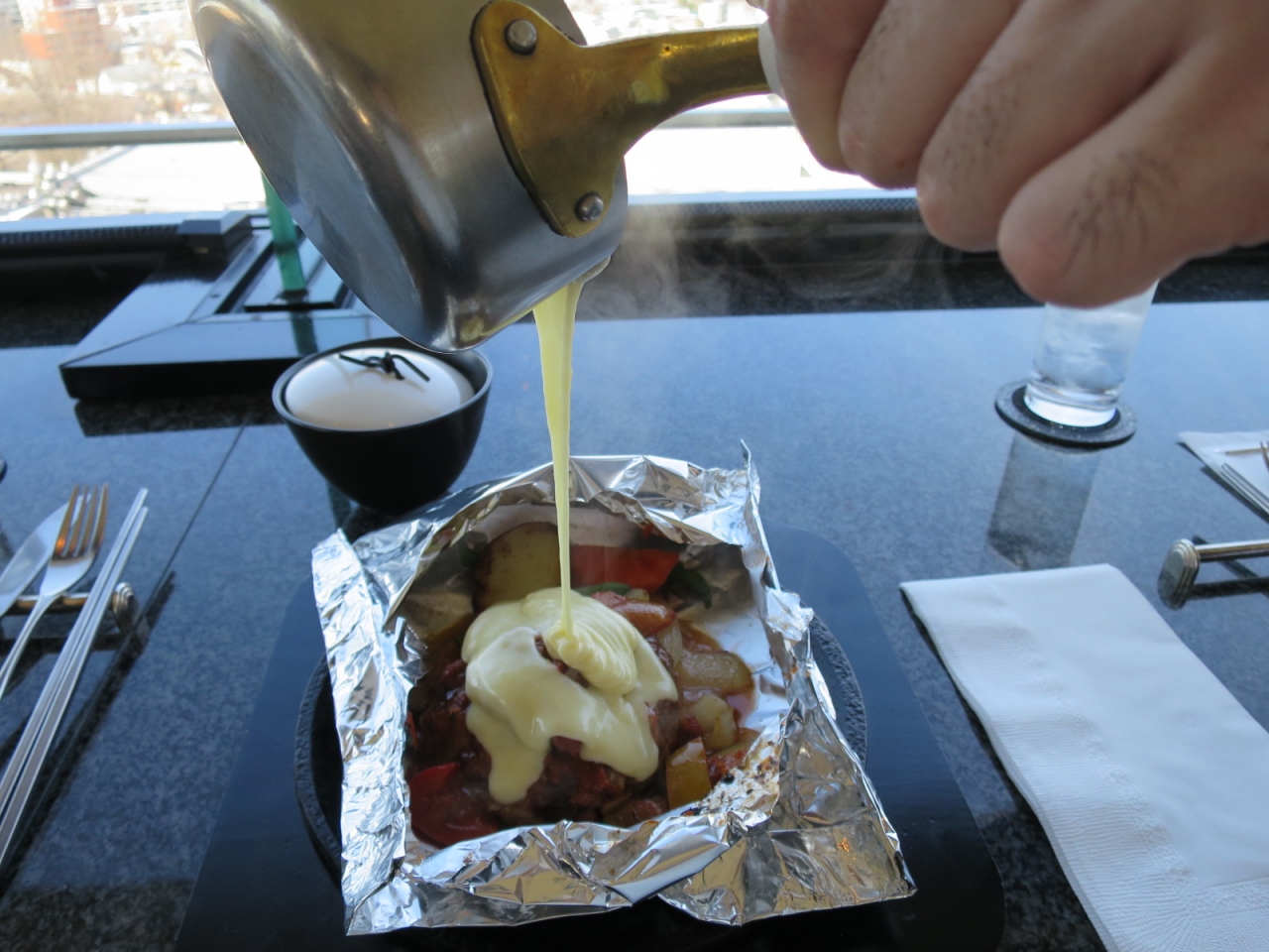 札幌伏見の高台にあり、窓を向いた席からは、目の前が全て札幌市内を見渡す見事なパノラマビューです。景色が料理のスパイスとなって、味をより一層ひきたててくれる感じがしました。ランチメニューは十勝の池田産和牛を使ったステーキバーグ。数種類の包み焼きハンバーグから選べます。フォンダンチーズのメニューはとろとろアツアツのチーズを目の前でかけてくれます。
