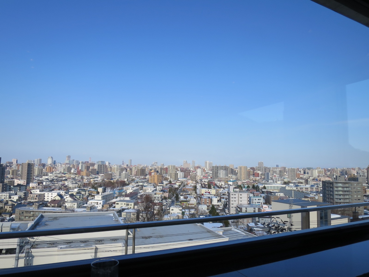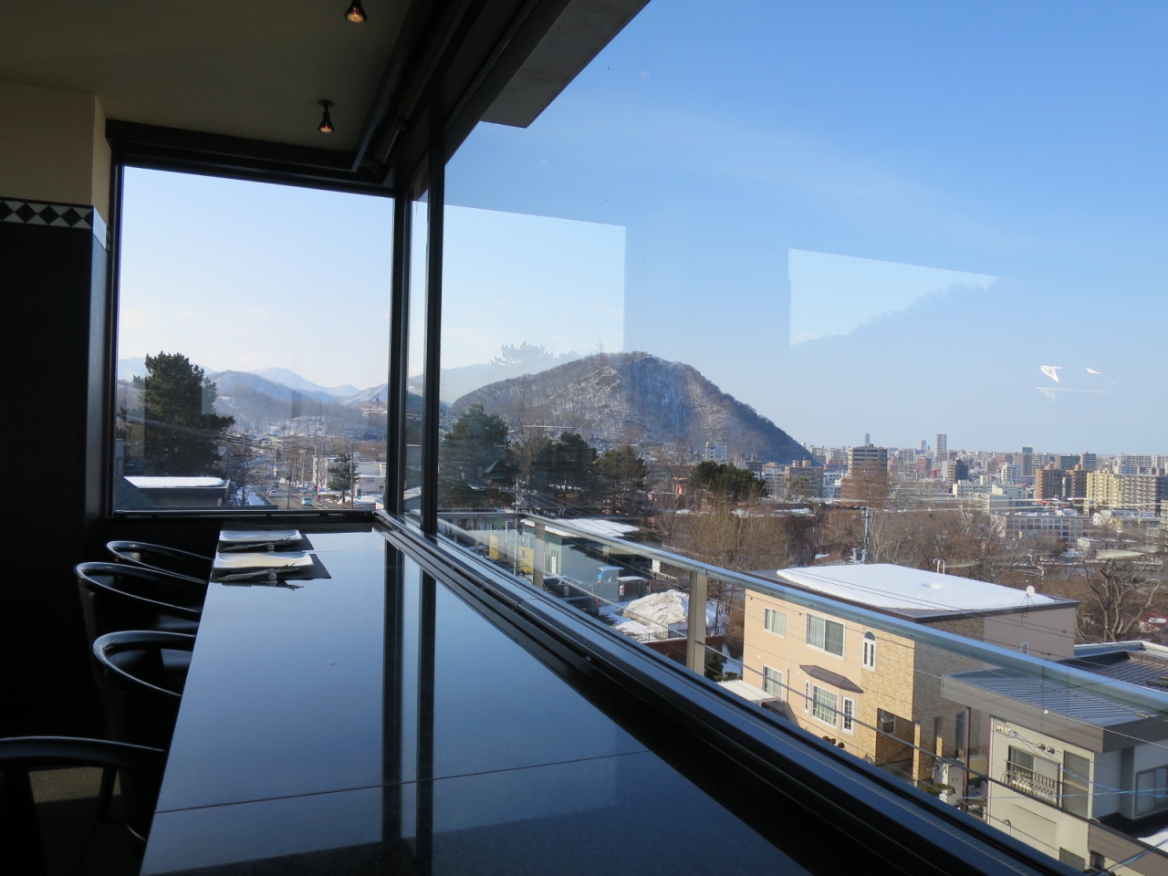 レストランがある伏見地区は、円山、宮の森と続く札幌のステイタスの一帯。値段も高そうですが、ランチタイムに限ってはこのビューが付く割には思ったほどではありませんでした。ランチタイムは11時30分から15時まで。やや遅い時間に訪れたため、運良く窓に面した席に通していただきました。正面、横と大きく開けていて、まるで展望台のようです。内装もきれいに整っていました。