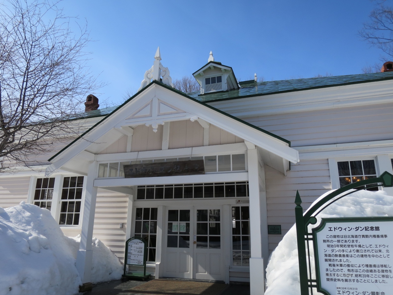 記念館には、エドウィン・ダンの生涯を紹介する事物が展示してあります。東洋の異世界、日本に来て、天覧農作業を行い、燕尾服、シルクハットなどの正装に、「こんな格好で農作業をしたのは世界で自分だけだろう」と語ったエピソードの紹介や、夫人や家族の写真などの展示がありました。見学後、昔の真駒内、ダンに出会ってきたような気分になりました。