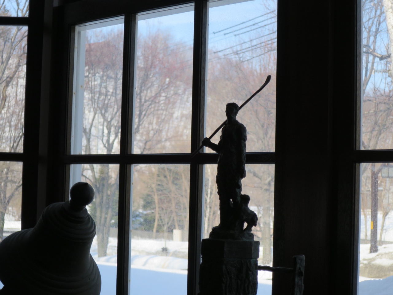 札幌オリンピックのアイススケート会場となった広大な真駒内公園は米軍のゴルフ場、自衛隊駐屯地は米軍基地、公営住宅が並ぶ一帯は米軍家族住宅、そしてオリンピックの選手村となったところです。そしてそのいずれもが、昔はエドウィン・ダンが礎を築いた試験牧場でした。記念館に展示してある写真を見てみてください。ここが真駒内とは思えない広大な草原が広がっています。今からはとても想像できない一面の草原の真駒内を見ることができます。