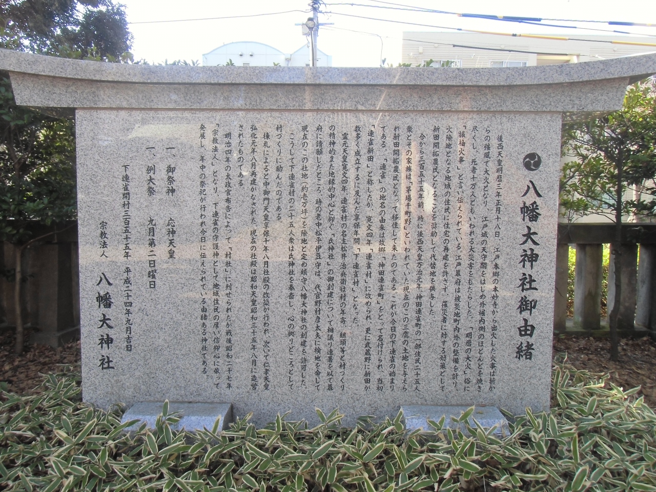 ここ「連雀」は振袖火事後に神田連雀町の住民の代替地として新田開発され、氏神社として創建された。