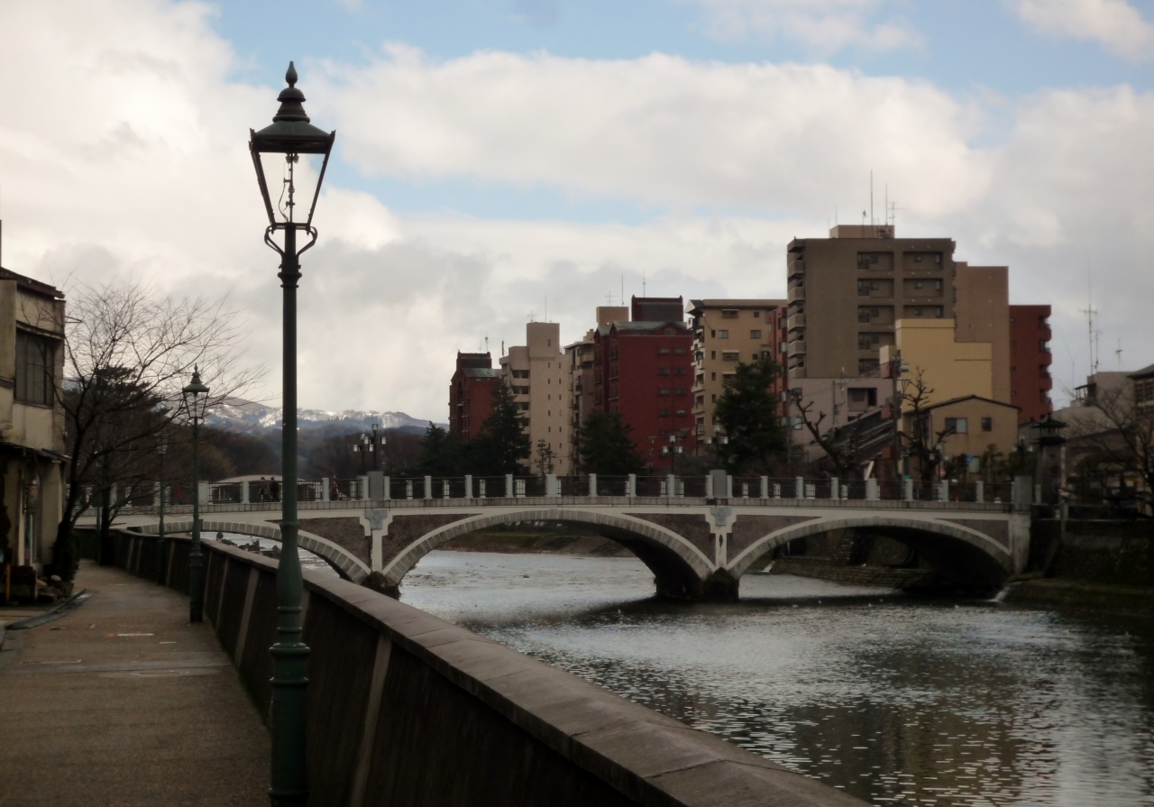 浅野川にかかる橋で、ひがし茶屋街から主計町茶屋街へ行くのに便利です。