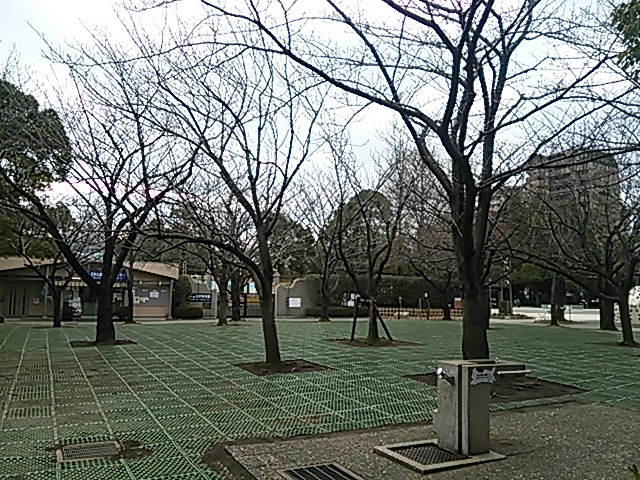 これから桜の咲くシ−ズンに入りますが、写真のとおり見事に桜の木の植え込みがあります。お花見に是非!!