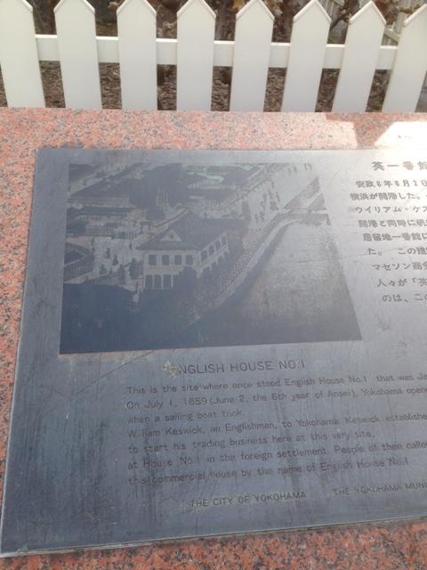 日米修好通商条約締結後、横浜にはたくさん商館や住宅があっとい間に立ち並びました。英一番館もそのうちの一つですが、それは、とりもなおさず日本人が英国人を受け入れたということでもあります。この記念碑を見て、この商館が賑わっていた当時の様子が髣髴とされました。
