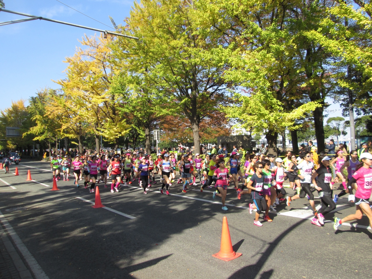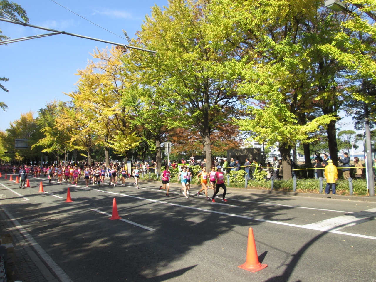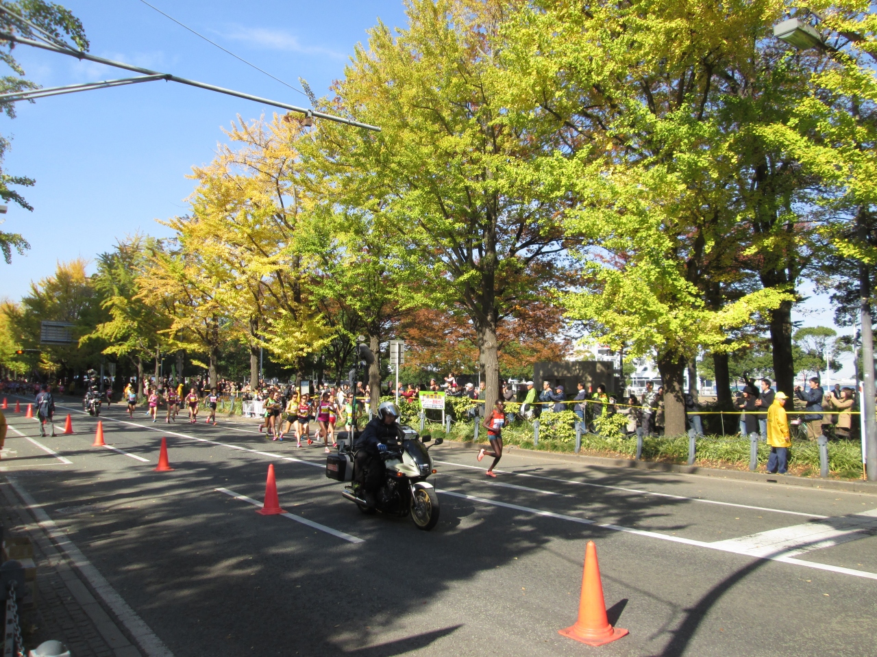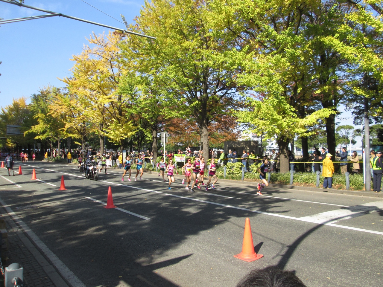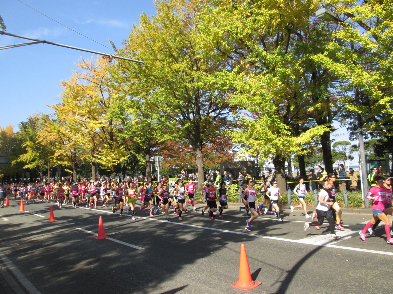 11/16、最後の横浜国際女子マラソンが開催されるということで、山下公園通りがマラソンのスタート地点になりました。この日はマラソン開始前からたくさんの大会運営者、マスコミが来ており、通りの両端にはたくさんの見学者が来ていました。
