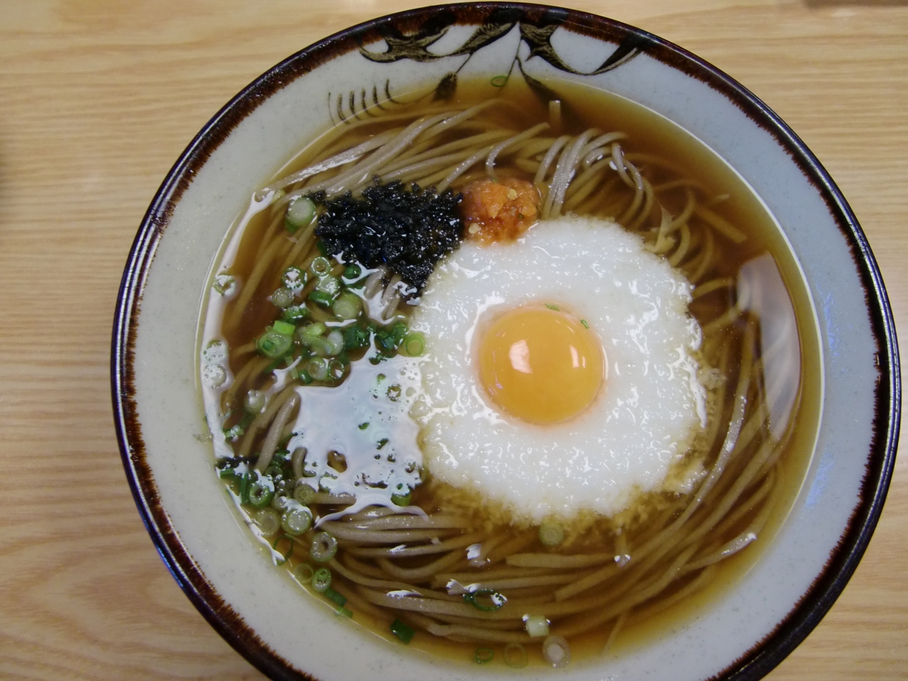 あまりに寒くて、温かいとろろ月見そばを食べました。体が温まってとても美味