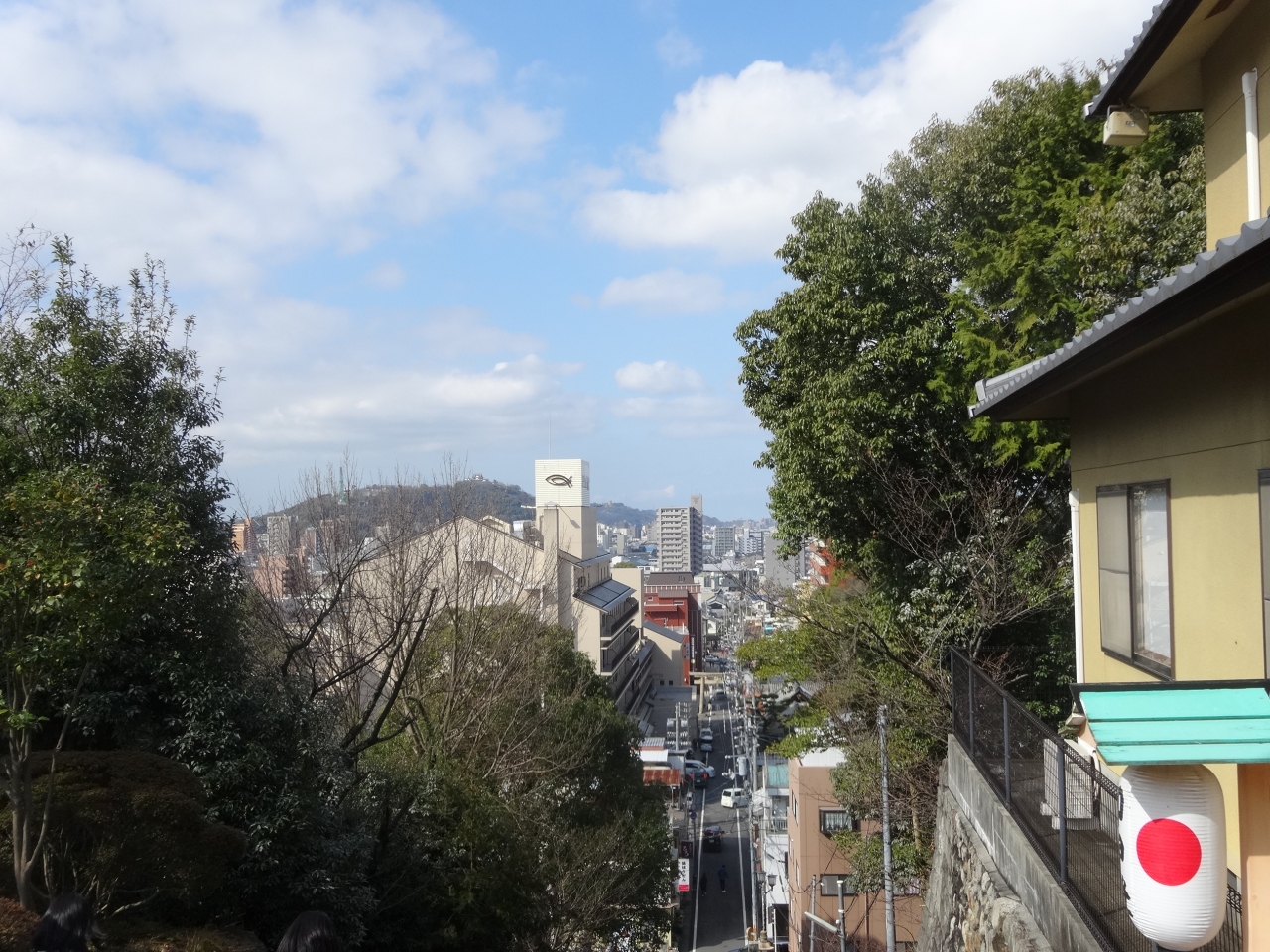 道後温泉から坂を上り、その後、150段弱の階段を登ったた先にあります。