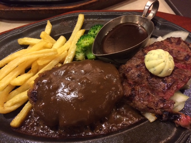 ハンバーグと国産牛カットステーキを注文しましたが肉も付け合せの野菜も冷たいような。係のひとにもう一度火を入れてもらいました。