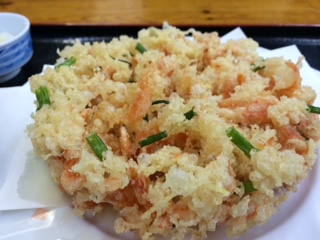 桜エビのかき揚げは値段も高いですが、とても大きい!