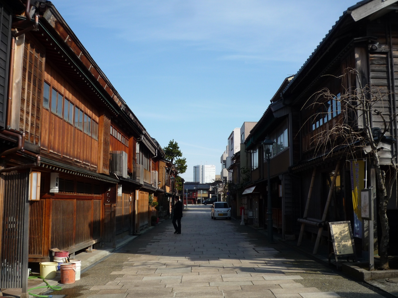 先にひがし茶屋街に行くと、あちらは賑やかなので閑散としていると感じます。