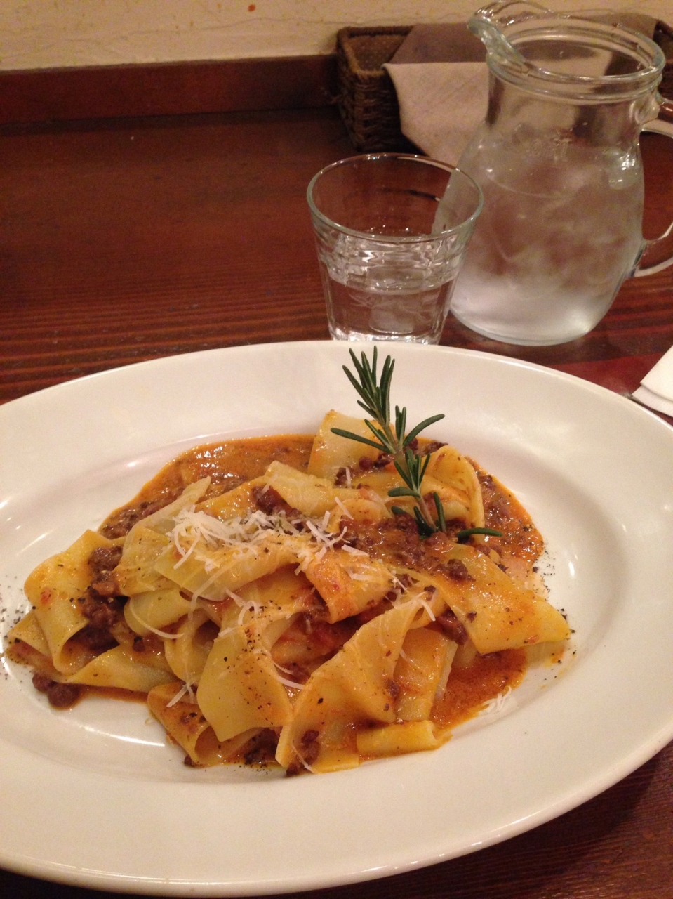 牛肉ラグーソースパスタを注文しましたが、生パスタでモチモチで、ソースも絶品。夜はグループの飲み会食事会がほとんどですが、一人でも、アルコールなしでももちろん気軽に入れるお店です。