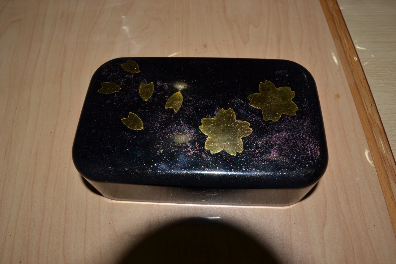 数ある金箔体験の所で、実用的なお弁当箱を作らせてくれるのがこのお店です。東茶屋へも近い便利な場所にあります。シールを張ってその上に金箔を乗せれば、ほぼ出来上がり。1時間でお気に入りの品物が出来ました。薄い金箔をはらはらしながら乗せるのは楽しかったです。