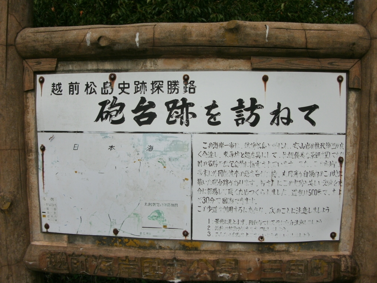 芦原温泉から車で10分ほど、日本海を望む海岸沿いにある、江戸時代末期に丸岡藩が沿岸警備のために築いたという砲台の跡です。