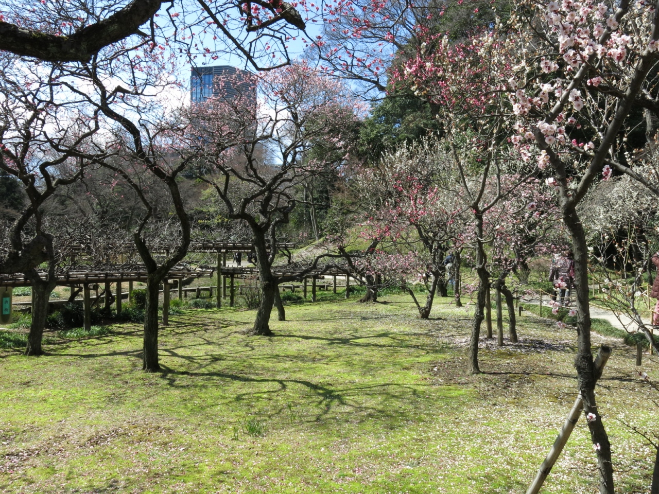 春を感じに行ってきました。入口のしだれ桜は、まだ蕾でしたが、奥の方にある菖蒲園近くには、紅白の梅が咲き乱れていました。そんなに大きくな梅の木ではないですが、本数が多いので見ごたえあります。奥まった場所ですので、静かに梅を鑑賞できますよ。