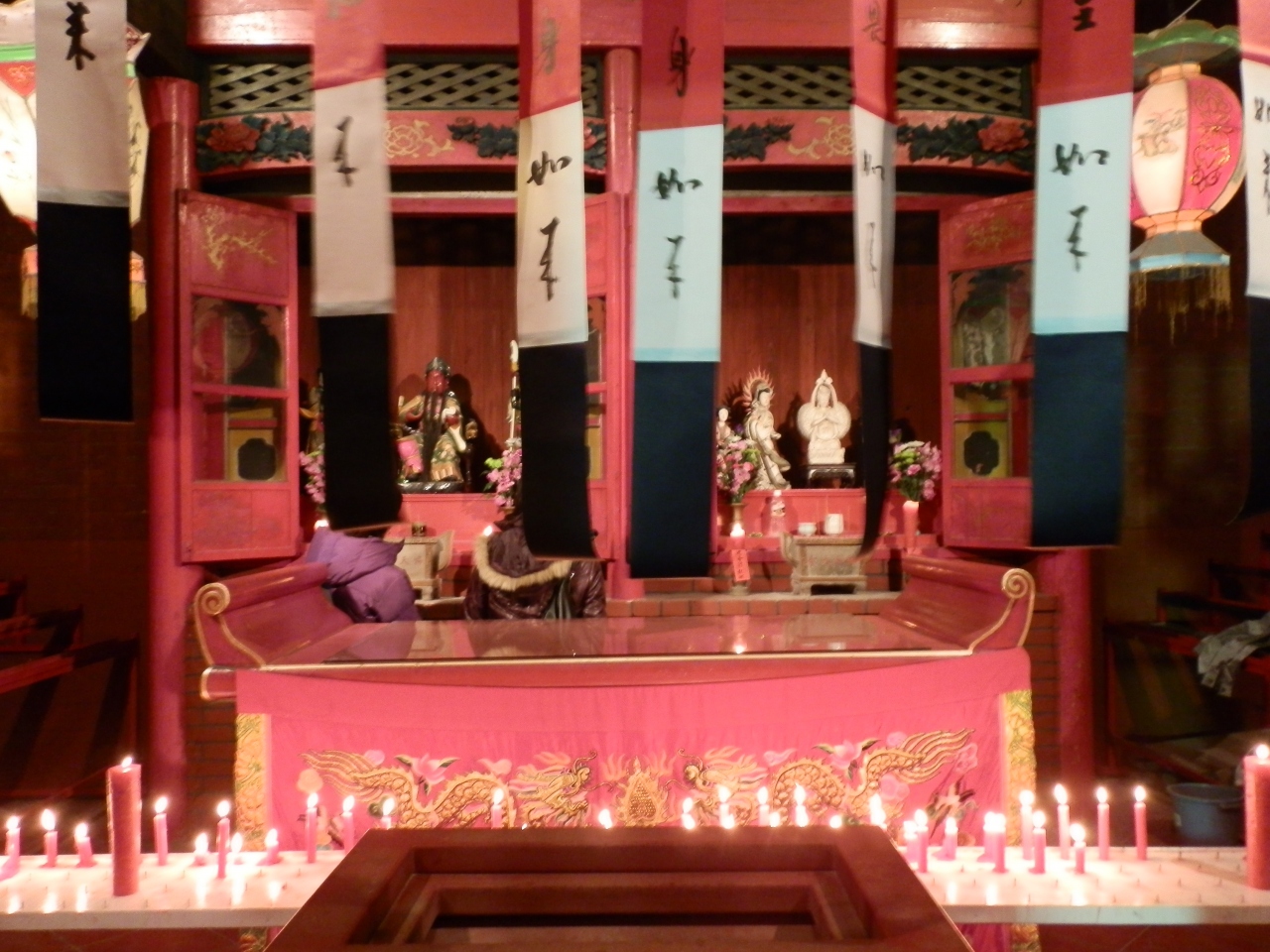 ランタンフェステバルも「唐人屋敷会場」まで来ると、極端にランタンも減り暗い。人通りも少なく寂しい。関係者が座る席なのか、その椅子にも誰もいなかった。