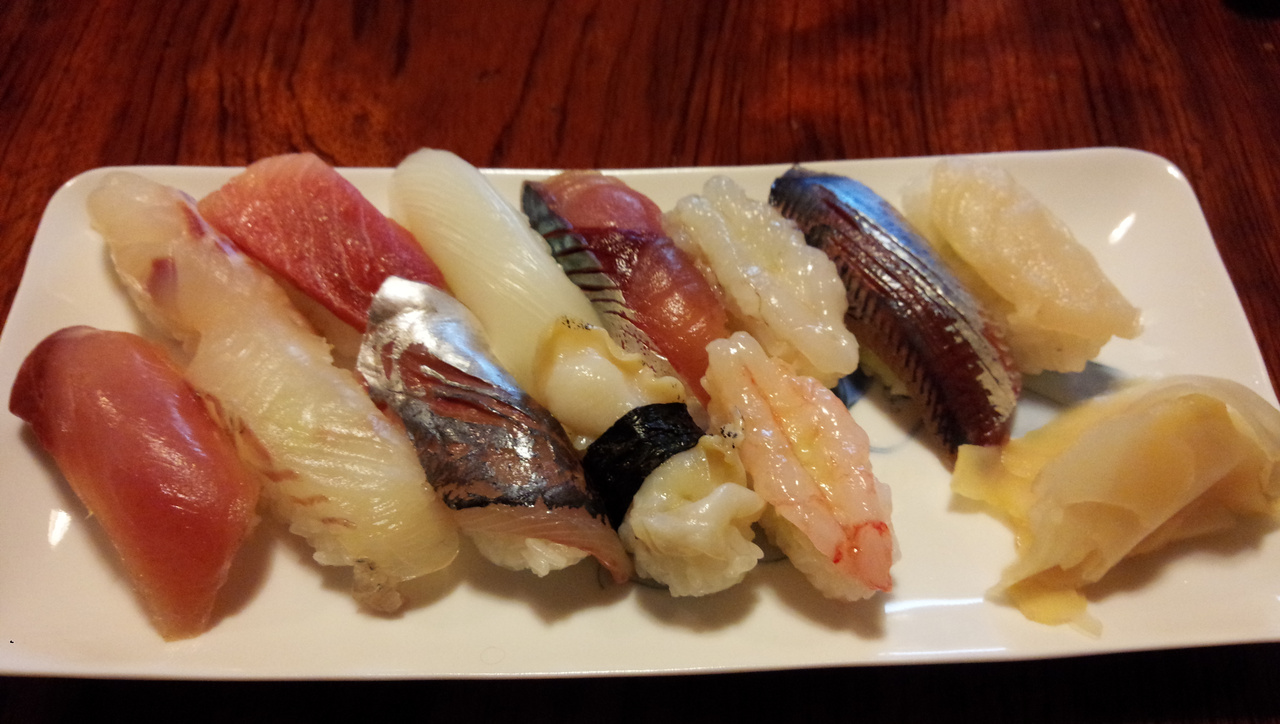 二階の個室に通され、3,000円の握りをいただく。どれもうまい。すしは小ぶりである。