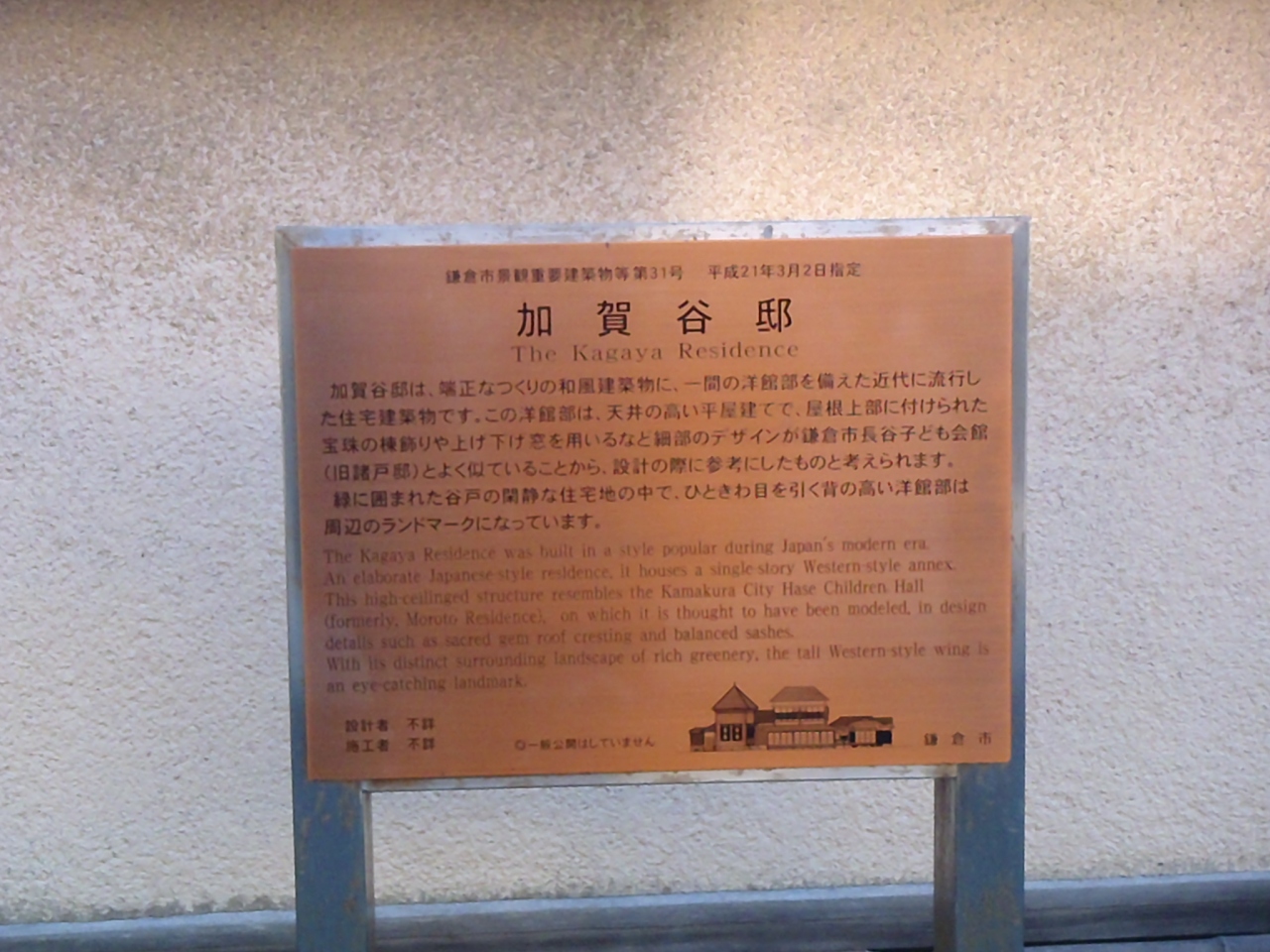 県道311号線長谷小路の甘縄神明社の表参道から100m先の右手にある神奈川県景観重要建築物に指定されている建物です。