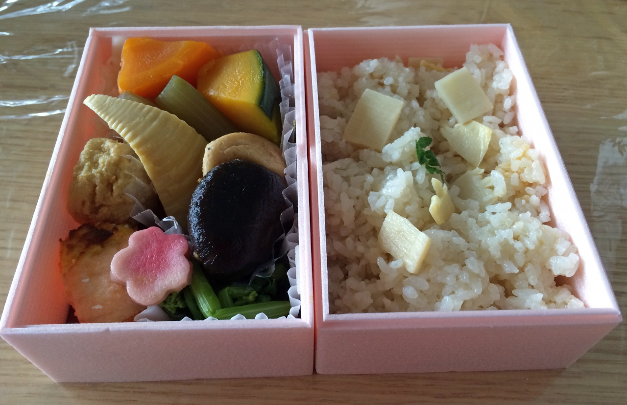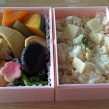 筍御飯弁当は、コンパクトなサイズのバラエティ豊かなお弁当です。