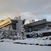 むしろ、僕らの世代だとキングジョーとウルトラセブンが戦った場所と言った方が、「あの建物ね」と言うほど当時は斬新的な建物です。今でも色褪せてません。今回、大雪で普段は見られない景色が見られました。