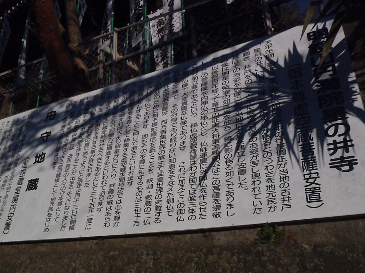 星月の井の案内板に書いてありましたが、奈良時代の名僧行基が星月の井から出てきた光る輝く石を虚空蔵菩薩の化身と思いこのお堂を立てたと伝わっているそうです。