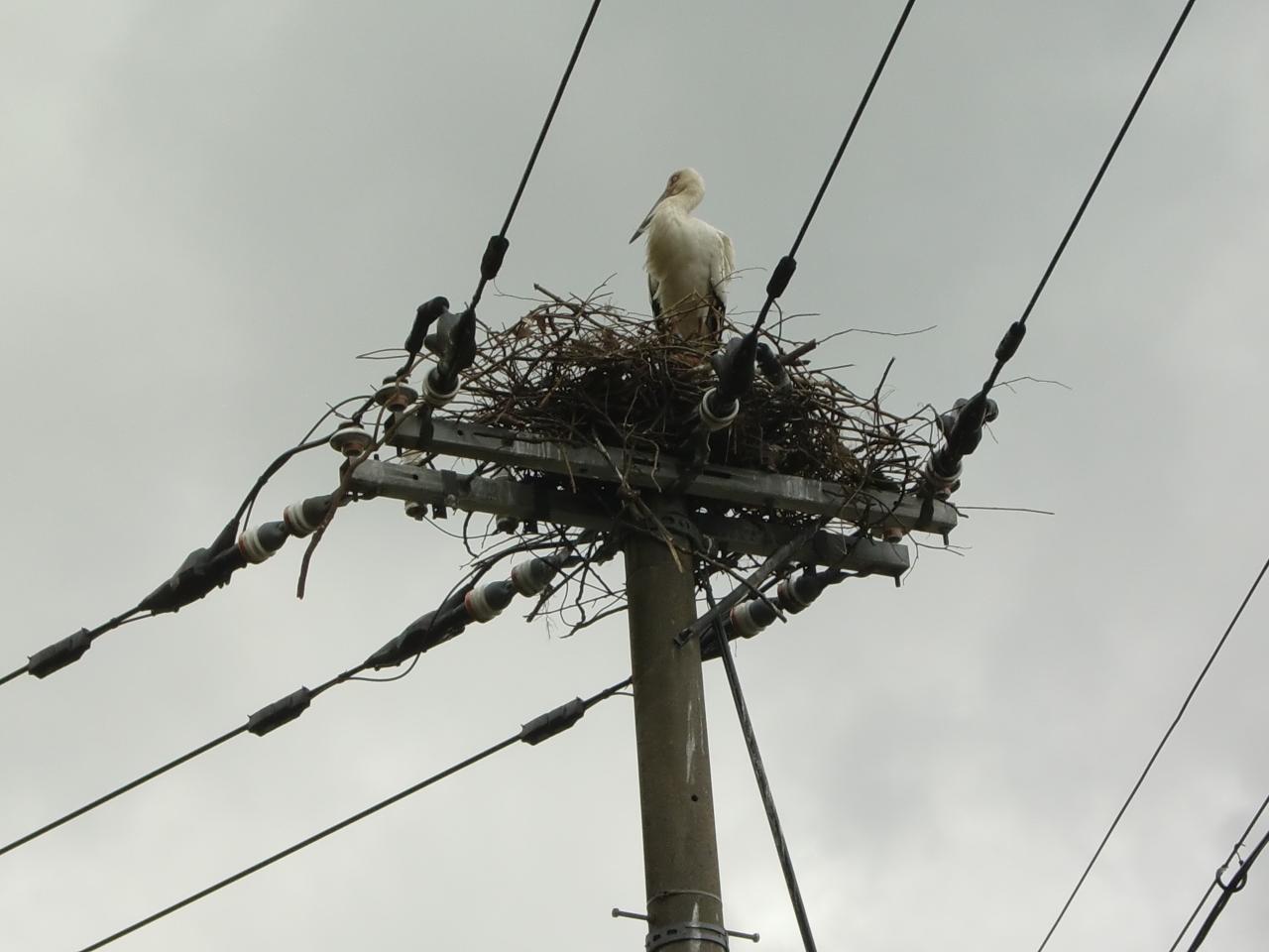 駐車場から玄武洞公園へ向かう途中、電柱の上にあのコウノトリさんが!!