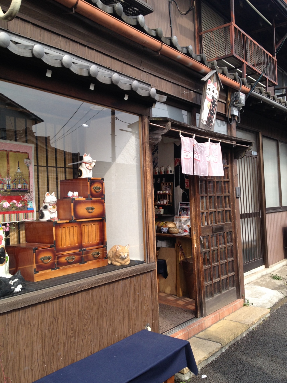 谷中のさんさき坂、全生庵の近くにあるお店です。下町風情の残る店構えで寺町谷中の雰囲気にあっていました。店内には招き猫がいっぱい!大きさも表情もそれぞれ違い、見ているだけでも楽しい気持ちになりました。谷中らしいお店です。