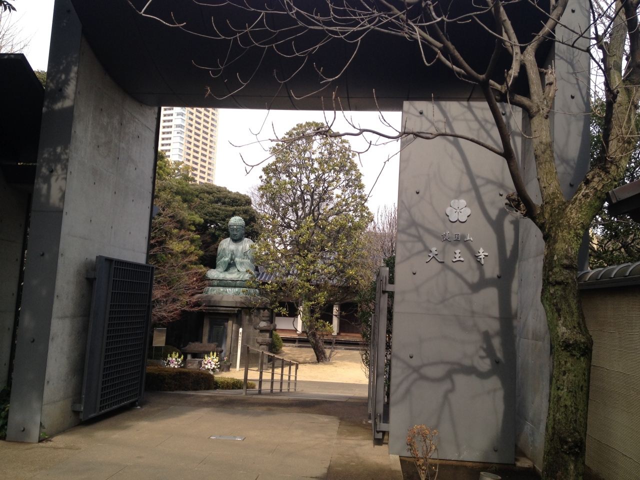 日暮里駅から谷中霊園に抜ける道にひっそりとある天王寺。近代的な山門の向こうには江戸期に鋳造された大仏様が鎮座しています。