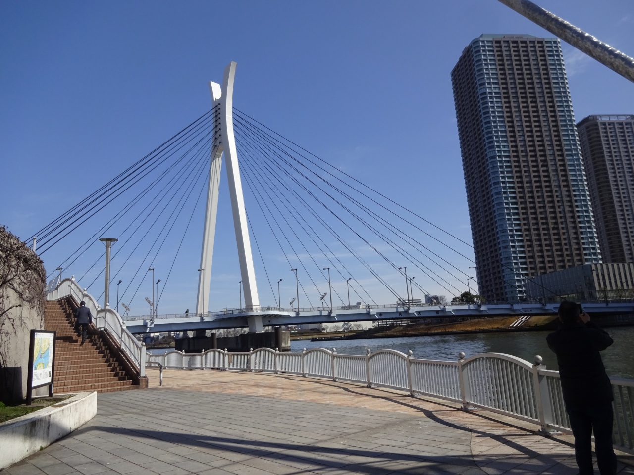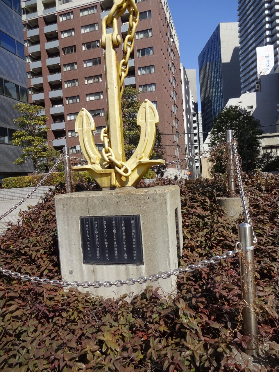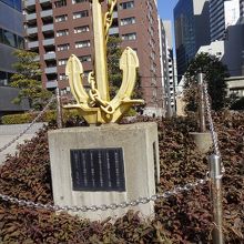 中央大橋の西側に来たら下に降りてリバーサイドを歩くと金色をした錨のついた碑があります。