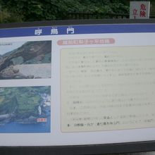 なお、現地にあった説明板によると、『1958年(昭和33年)県道として道路が開通したとき、当時の羽根盛一知事が「渡り鳥を呼ぶ門」として「呼鳥門」と名づけた。』と表記されていました。