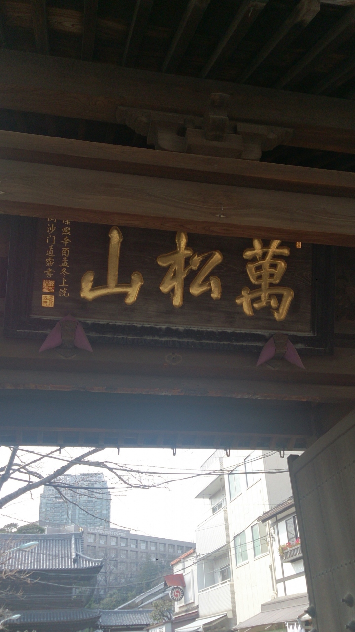 都営地下鉄と京急の泉岳寺駅を地上に出て緩やかな坂を上りはじめるとすぐに正面に見えてきます。木造の門で萬松山と書かれた額が掲げられており、遠くからも、かなり立派な門なのですぐわかりますし、名刹だけあって門からもパワーを感じます。