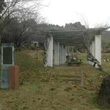 天智天皇御製の小倉百人一首掲載の「秋の田の刈穂の庵のとまをあらみ我が衣手は露にぬれつつ」の歌碑が園内にあります。
