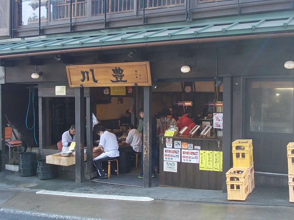 参拝に向かうときに通りかかりましたところ、店先で職人さんが熟練の手さばきで鰻を捌いて串にさしておりましたので、こちらで食事をしようと先に参拝を済ませてまいりましたところ、たいへんな込みようで、二階席へ上がっておいしい鰻をいただきました。