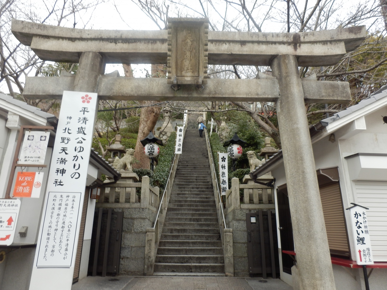 こっちをお勧めします。但し裏口からの参詣になるけど、上り着ると正面に本殿、参拝して振り返ると神戸の街が見下ろせます、多少の苦労はここで吹っ飛びます