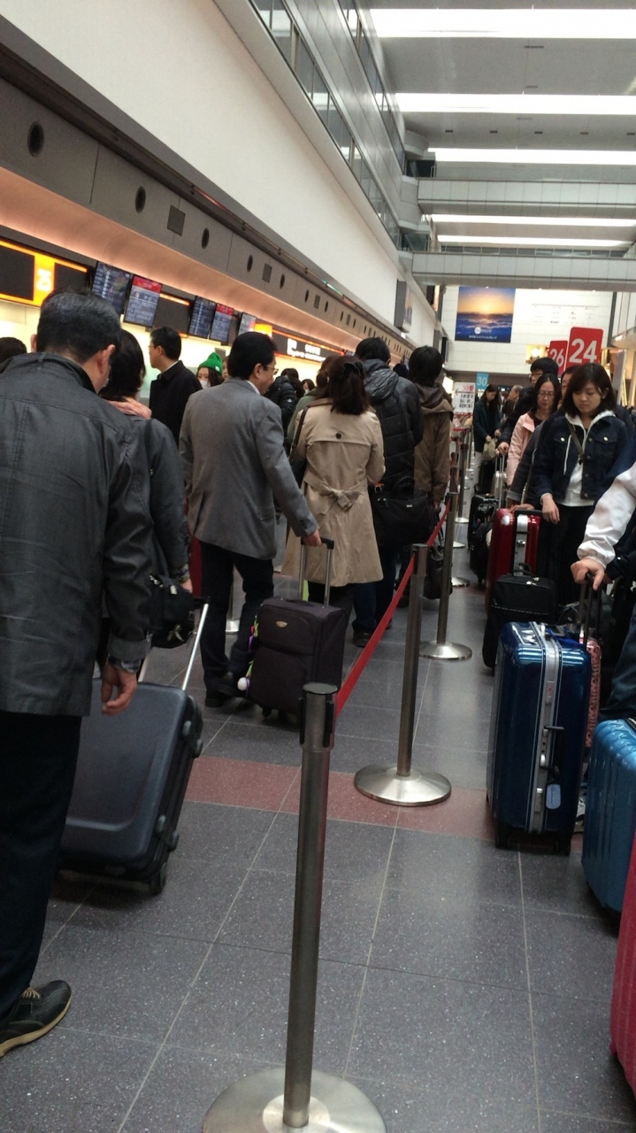 日本航空が使っているターミナルです。方面別チェックインを採用しているので、ターミナルが横長になっています。お店はたくさんあるので、食事や買物には困りません!欠航やdelayがあると荷物を預けるのも混雑しますので、繁忙期は早めのお支度を。
