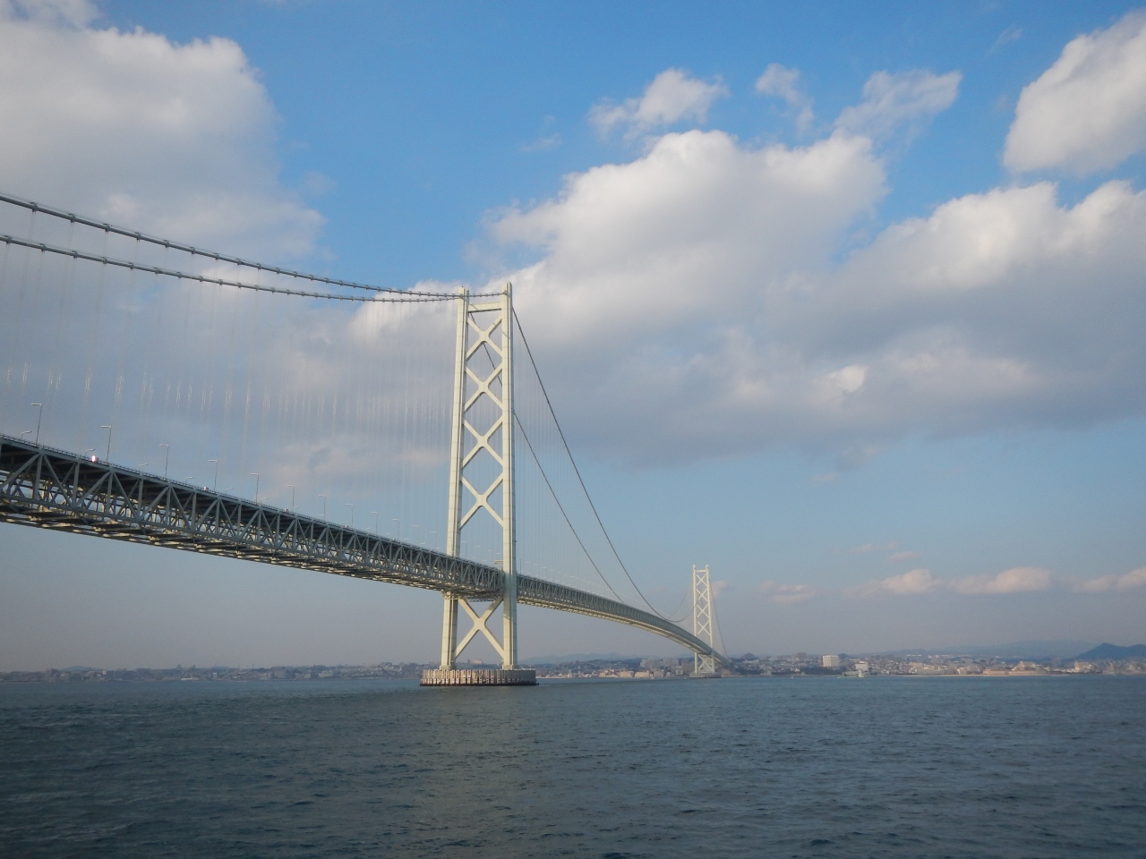 明石海峡大橋をくぐるのは、主塔間ではなく、主塔と淡路島の間です。
