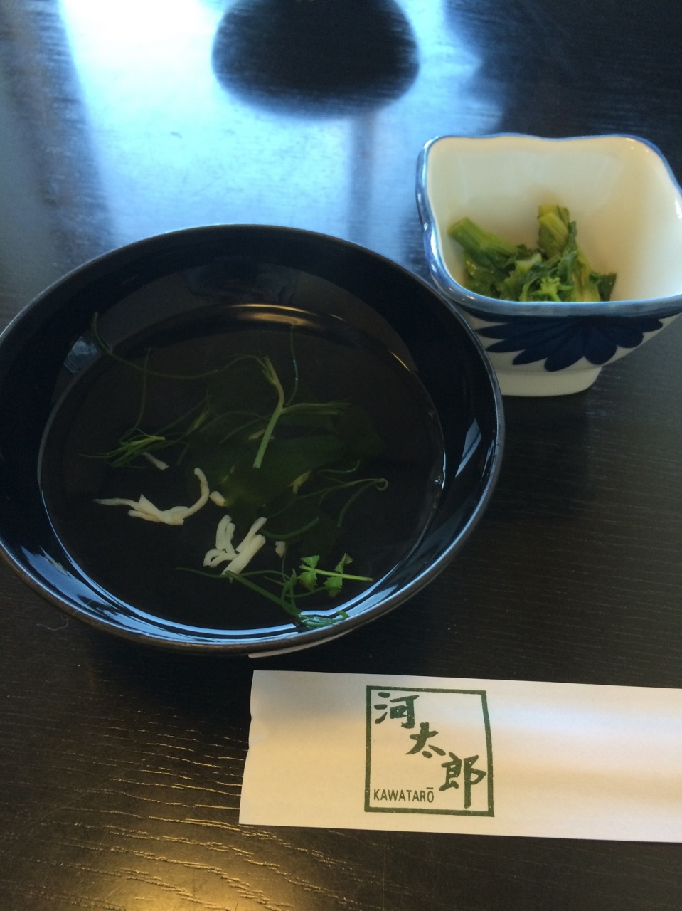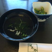 呼子のイカ料理屋さんの有名店。週末のお昼時は1時間待ちが当たり前です。定番の活き造り定食を注文しました。始めにお吸い物がでてきて、イカの活き造り、イカしゅうまい、赤だし、ご飯、お漬物、デザートです。ご飯は一回お代わりできます。
