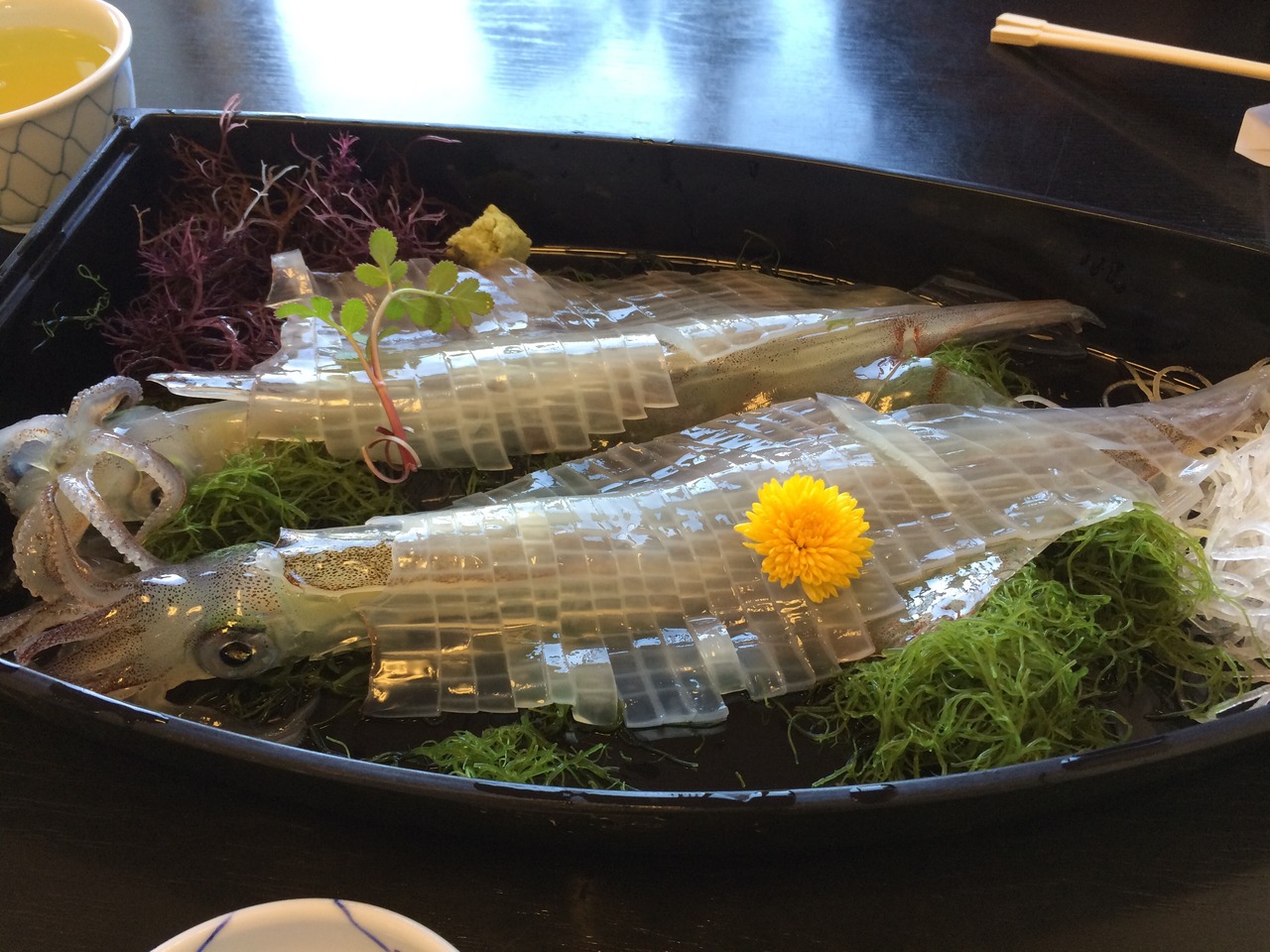 透き通ったイカは文句なしに美味しいです!そして活き造りの後の天ぷらが私は一番のオススメです。結構な量がありますが美味しすぎてパクパク食べれちゃいます。
