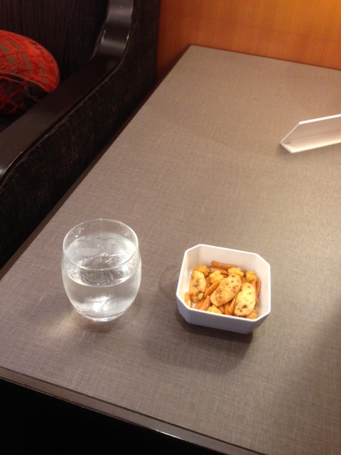 ラウンジ自体は国内線のラウンジなので、つまみのあられしかありませんが、焼酎は九州らしく黒白波が置いてありました。