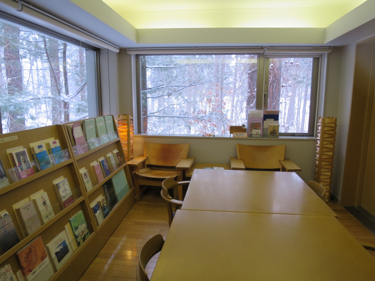 なお、1階には簡単なカフェもあるので、休憩もできます。外国樹見本林を望む静かな環境でくつろぐことができます。旭川の道の駅のおみやげコーナーでも売っている「氷点」ブランドのお菓子や雑貨のお土産がこちらにもありました。さすがに文学記念館の方が種類が充実していました。