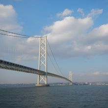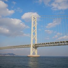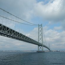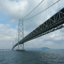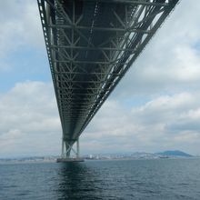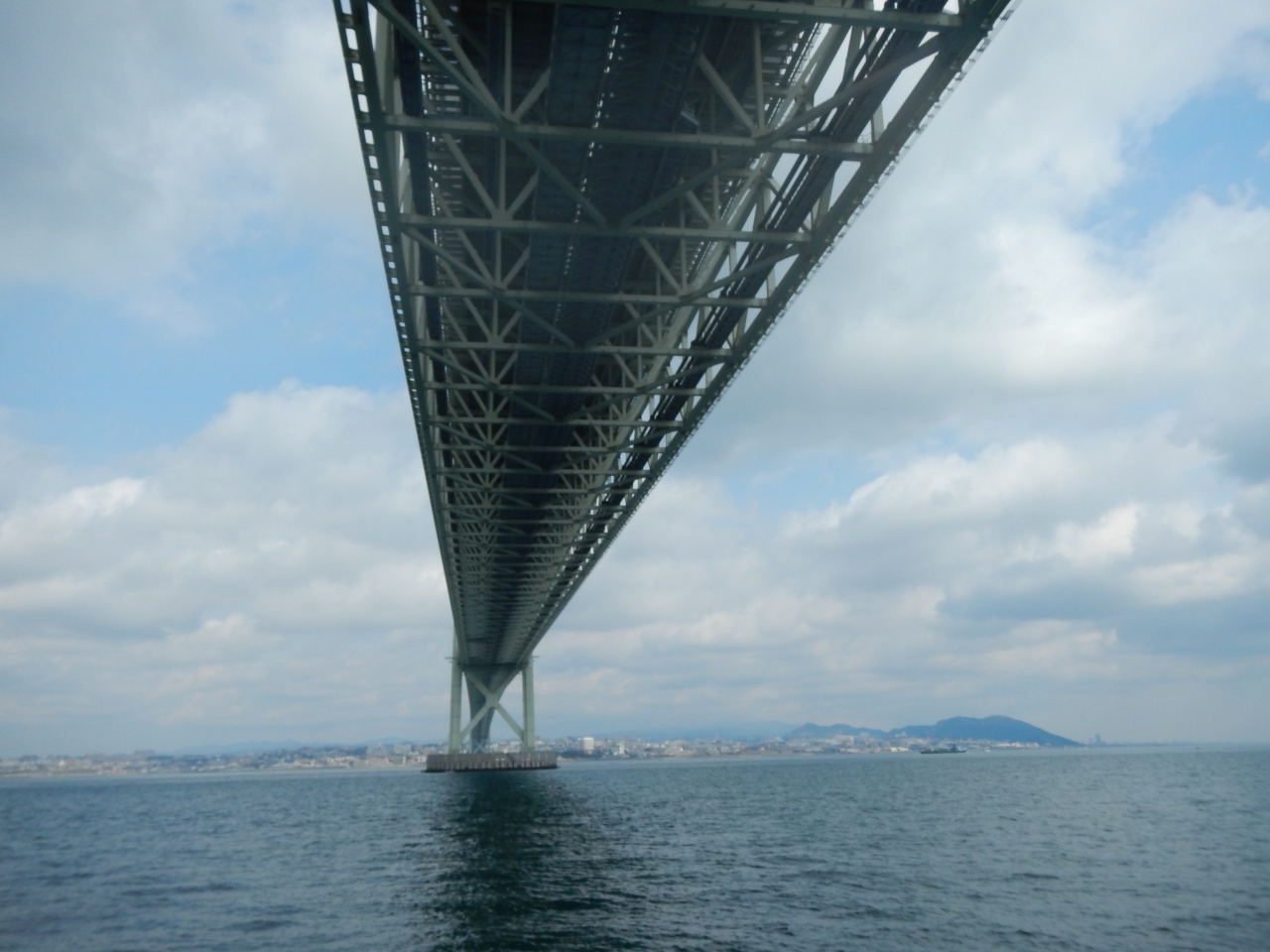 大型船の通る主塔間ではなく、主塔と淡路島側の間をくぐりますので、橋が間近に感じられます。