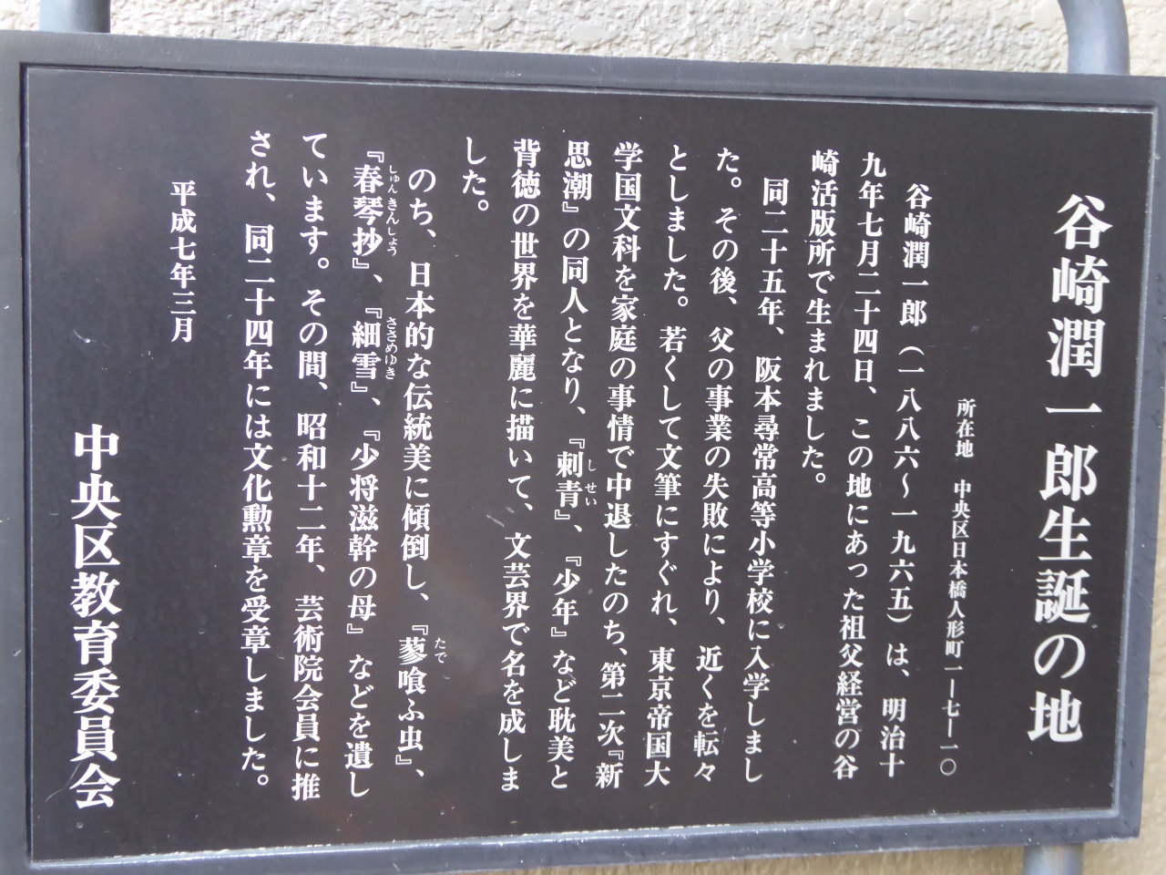 谷崎潤一郎(1886年~1965年)は、明治19年、現在の人形町で生まれました。