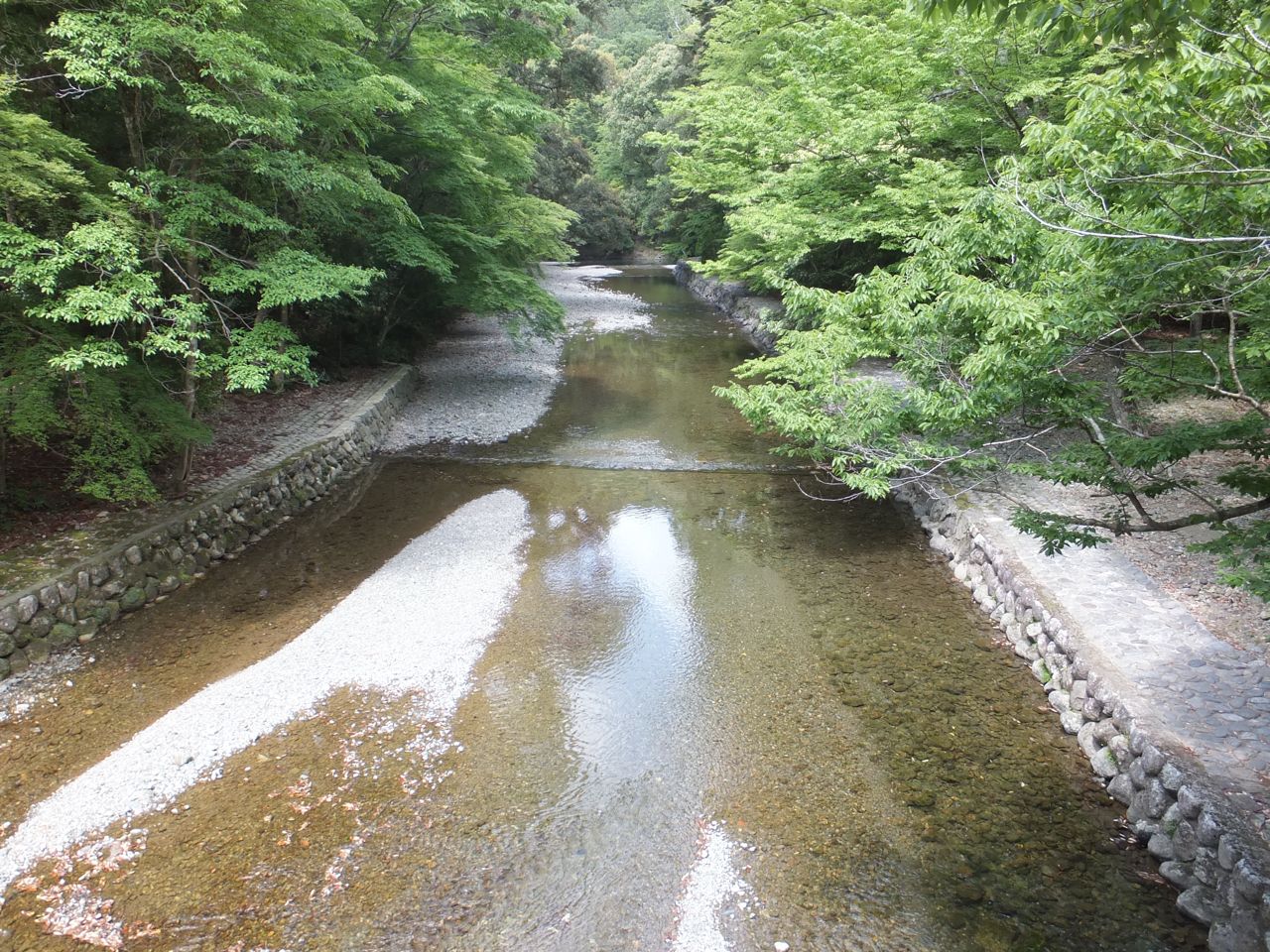 内宮の正宮への参道を神楽殿のあたりで右に折れると、宇治橋のミニ版ともいえる「風日祈宮橋」で五十鈴川の支流を渡り、お宮に向かうあたりが、内宮とそっくり。