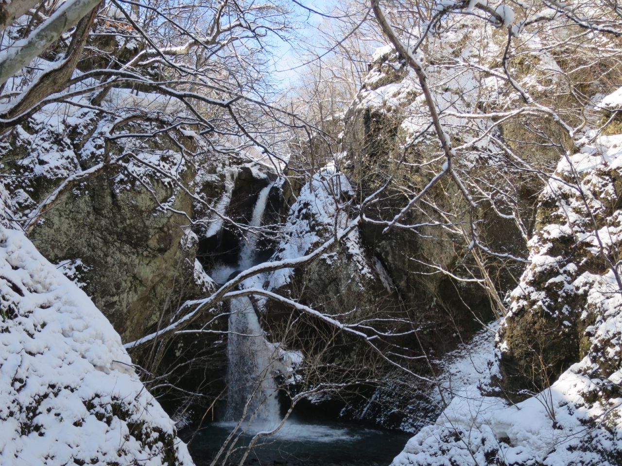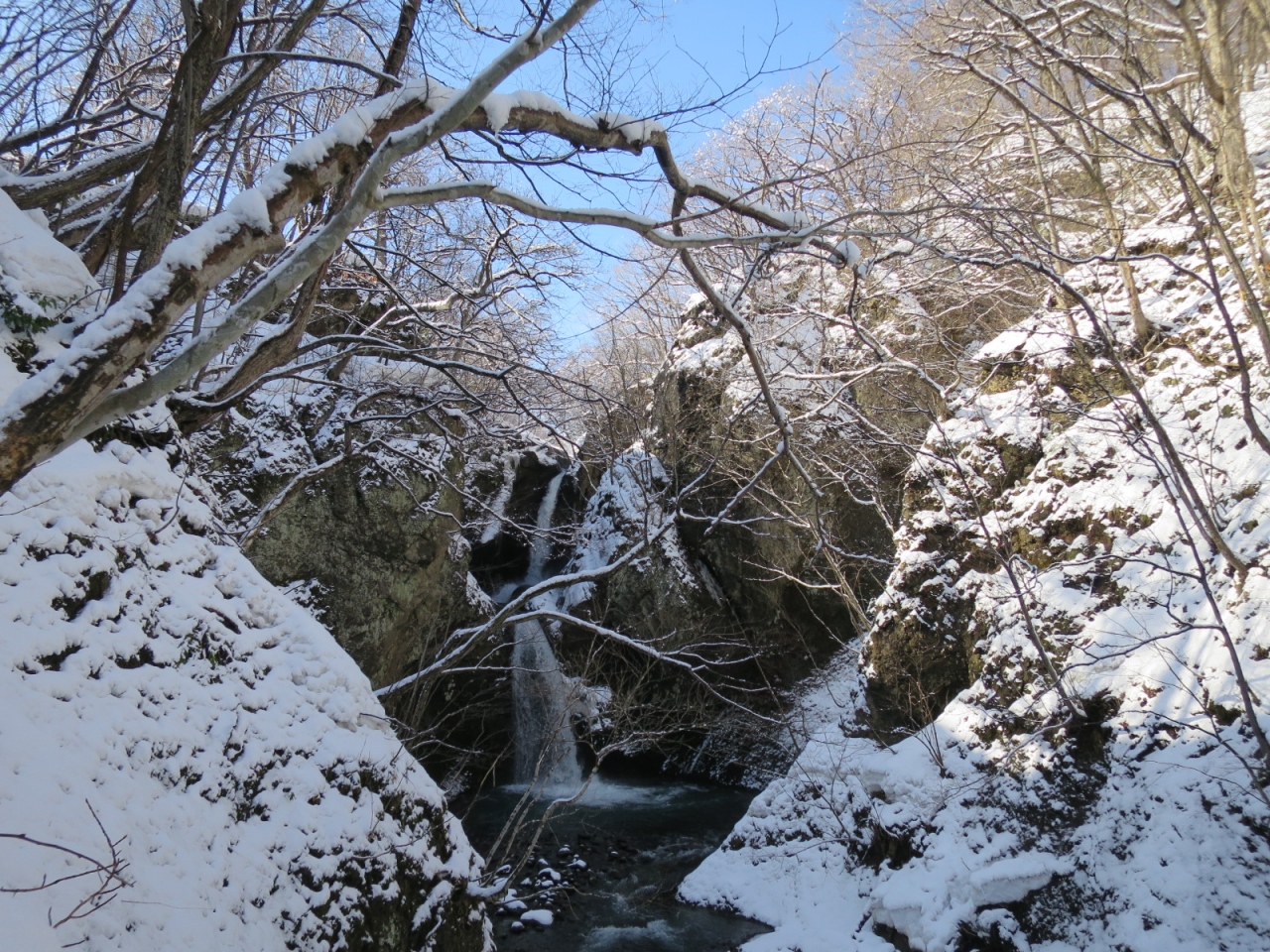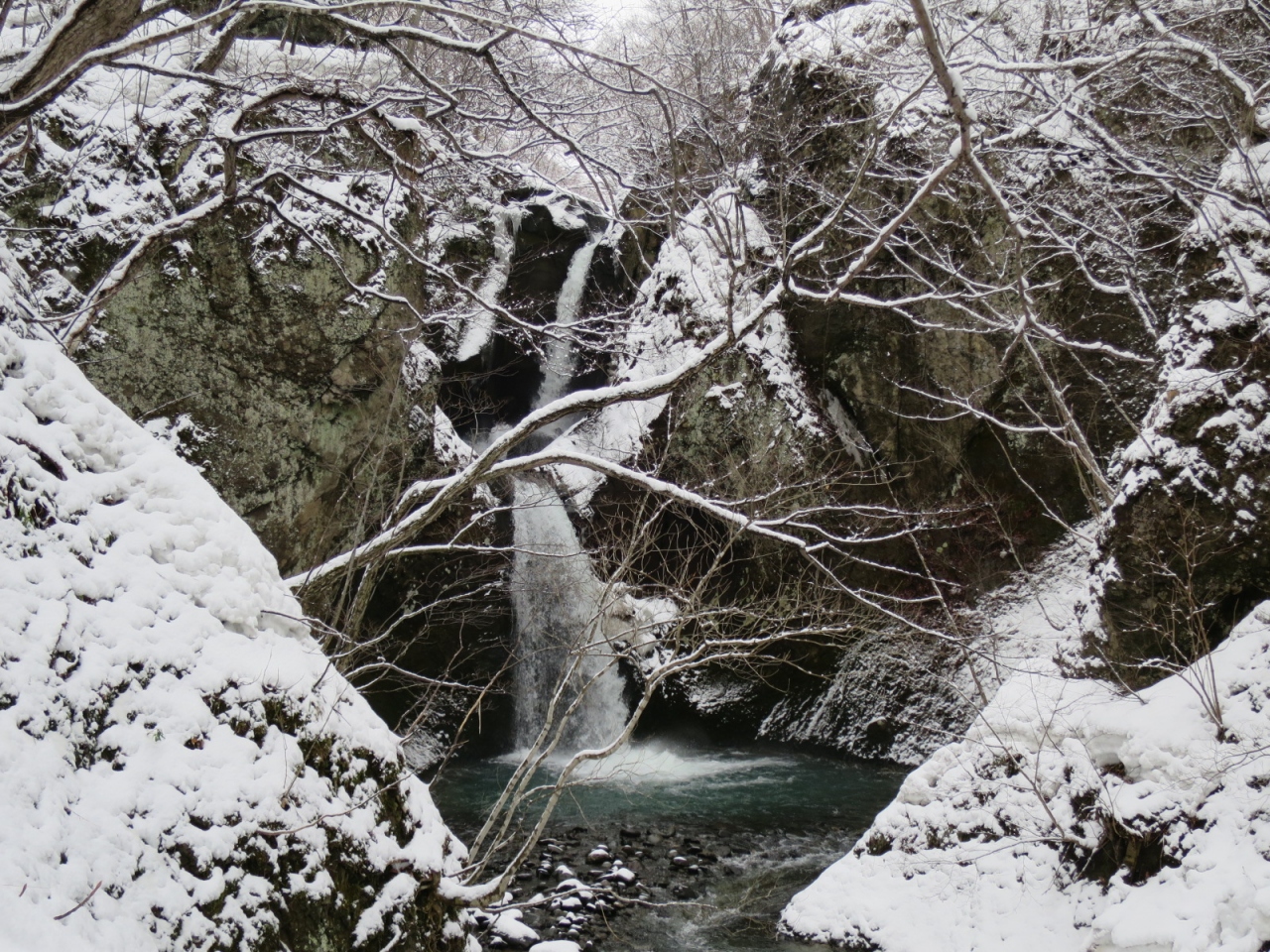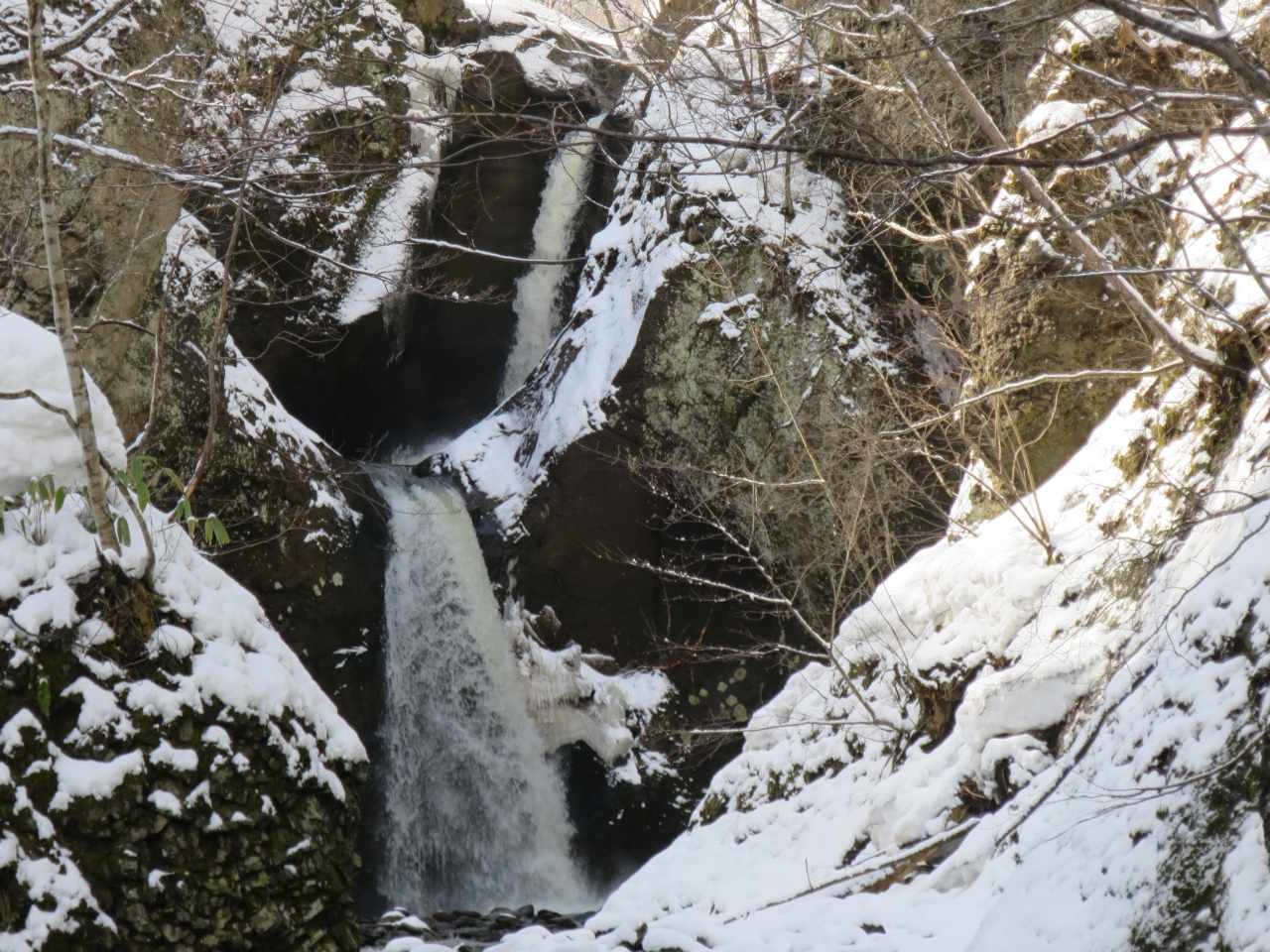 星置の市街地から割合すぐのところにある滝です。ただ、市街地と手稲山の森が接する境界付近のため、木々が生い茂り、深く切れ込んだ谷に流れ落ちる深山幽谷の雰囲気のある滝です。星置川の小川を遡ると、岩のカーテンの隙間からやがて2段に分かれた見事な滝が現れます。水がしっかり岩から離れ、滝壺を形成している滝らしい滝です。